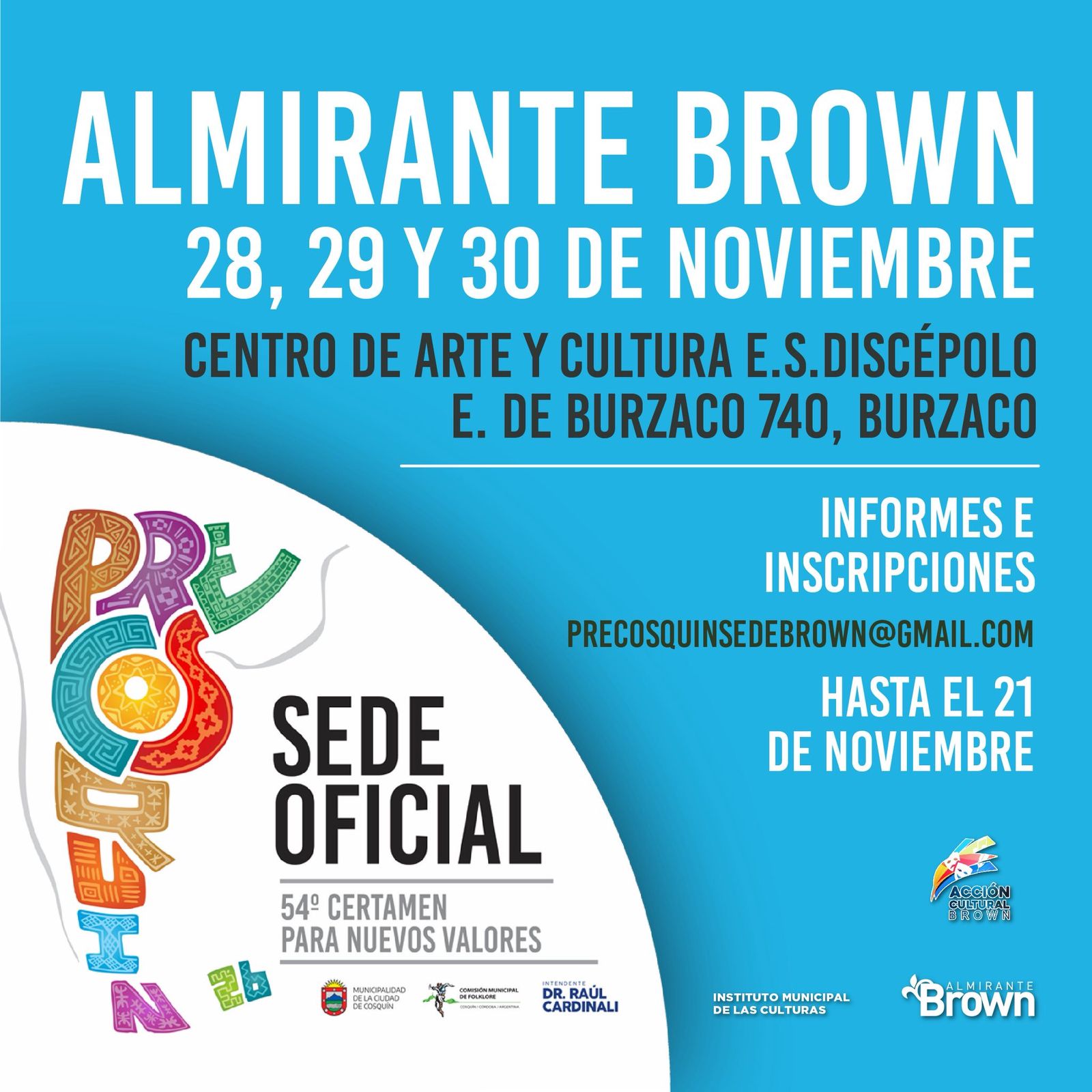 Los artistas que resulten ganadores en la instancia local tendrán el honor de representar a Almirante Brown en la ciudad de Cosquín, provincia de Córdoba, disputando un lugar en la gran final, que se desarrollará en enero sobre el emblemático escenario “Atahualpa Yupanqui” de la plaza Próspero Molina, junto a grandes figuras de la cultura nacional.