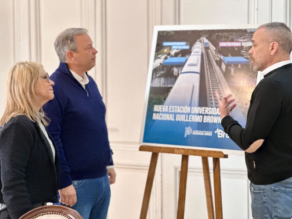 El intendente de Almirante Brown, Mariano Cascallares, mantuvo una reunión de trabajo con los secretarios de Infraestructura y de Prevención y Seguridad Ciudadana, Fernando Lorenzo y Paula Eichel, evaluando el avance del proceso licitatorio de la nueva estación de trenes de la Universidad Nacional Guillermo Brown (Unab).