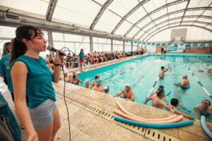 La jornada se llevó adelante en el establecimiento ubicado en las calles Camilo Quiroga y 25 de Mayo, donde el jefe comunal compartió un encuentro con vecinos y vecinas de la tercera edad que practican natación y aquagym en el lugar.