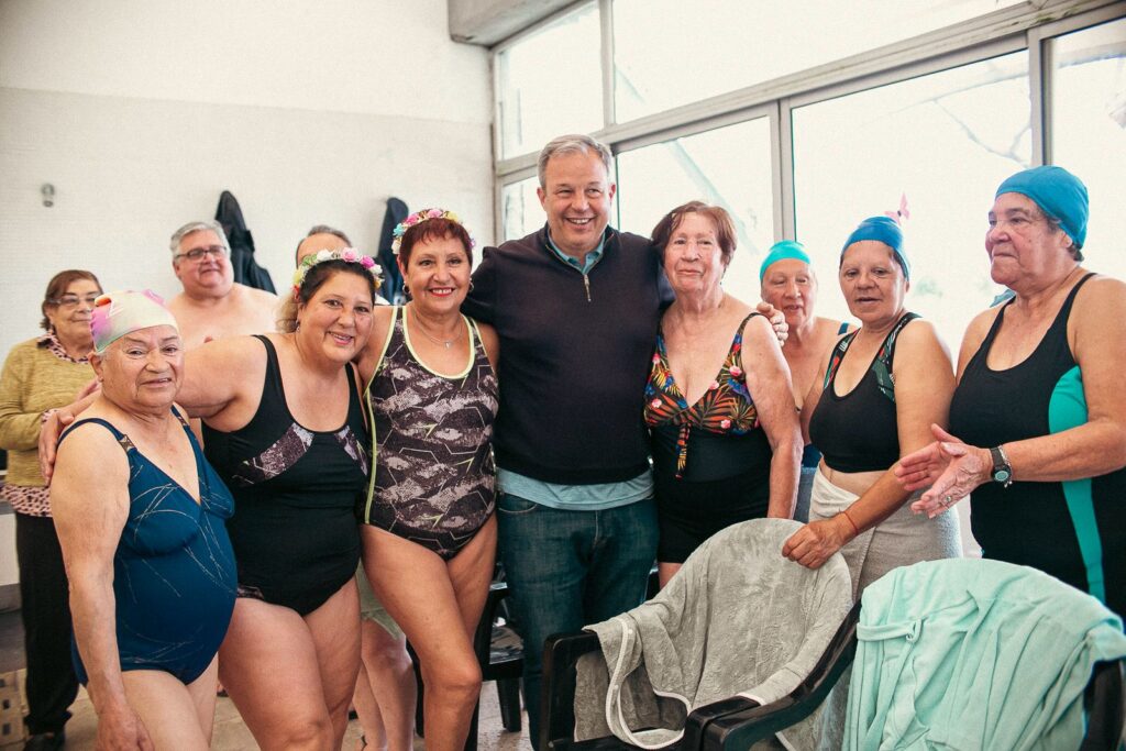 La jornada se llevó adelante en el establecimiento ubicado en las calles Camilo Quiroga y 25 de Mayo, donde el jefe comunal compartió un encuentro con vecinos y vecinas de la tercera edad que practican natación y aquagym en el lugar.