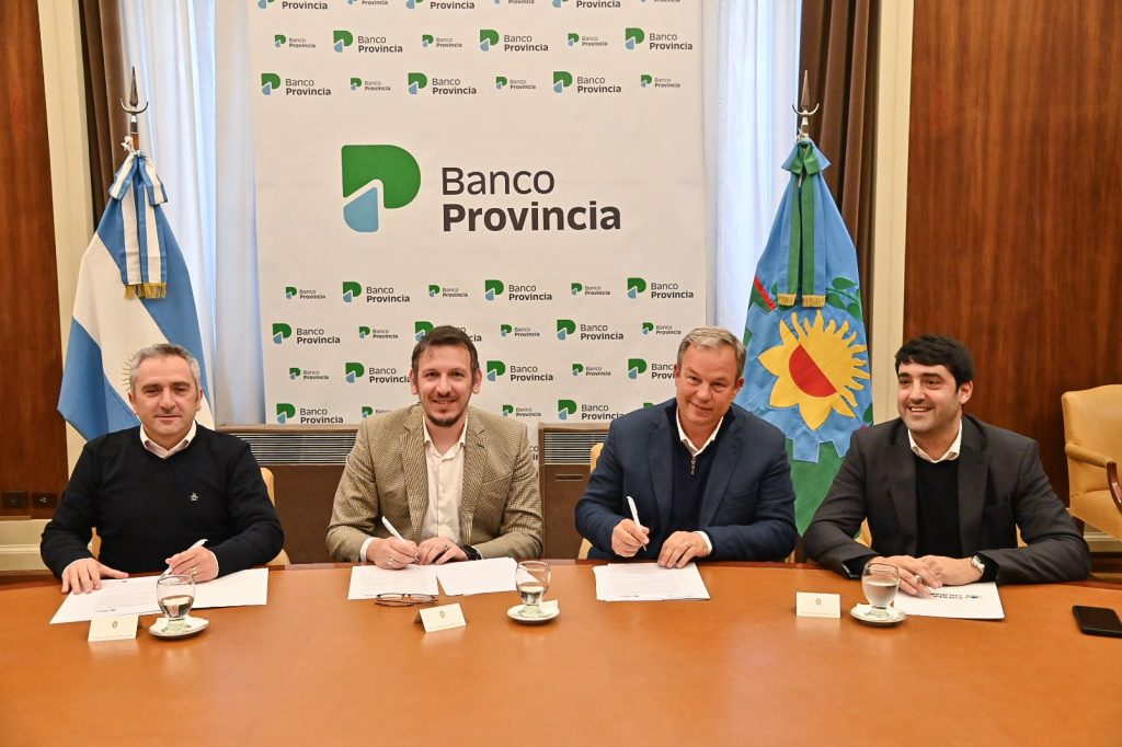 El intendente de Almirante Brown, Mariano Cascallares, participó de la firma de un convenio con el presidente del Banco Provincia, Juan Cuattromo, y el Ministro de Desarrollo de la Comunidad, Andrés Larroque, con el objetivo de facilitar el acceso a créditos para instituciones brownianas.