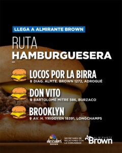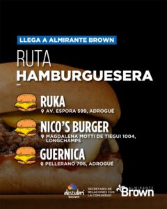 “Con la ruta hamburguesera seguimos acompañando a nuestros comerciantes locales y generando propuestas para que las familias brownianas disfruten de la gastronomía del distrito, fortaleciendo al mismo tiempo el trabajo y la producción en Almirante Brown”, destacó al respecto el intendente Mariano Cascallares.