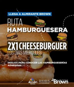 El municipio de Almirante Brown anunció la llegada de la “ruta hamburguesera”, una propuesta gastronómica que se realizará todos los miércoles con promociones especiales de 2×1 en hamburgueserías del distrito.