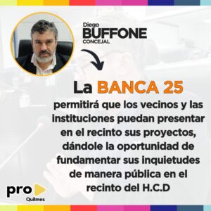 El concejal PRO de Quilmes, Diego Buffone, es el autor de una iniciativa que tiene como fin la creación de la que dio en llamar; “banca 25” en el Concejo Deliberante.
