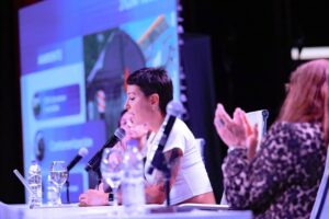 En una parte, Mayra se refirió (abriendo el paraguas) sobre los anegamientos en la cuenca de los arroyos San Francisco-Las Piedras, y dijo que (para que no haya más inundaciones) “las obras requieren una inversión de más de 400 millones de dólares, una cifra que resulta imposible de asumir para los municipios afectados”.