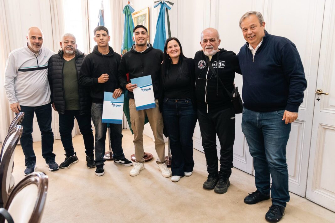 El intendente municipal, Mariano Cascallares, y el equipo del Instituto Municipal del Deporte, mantuvieron una reunión con los boxeadores brownianos, Jeremías Ponce y Atilas Díaz, a quienes les ratificó el acompañamiento del municipio en el marco de las futuras competencias internacionales.