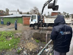 “Estamos trabajando fuertemente para mitigar al mínimo los efectos de las fuertes lluvias que afectan a toda la región, dando respuesta en los barrios y profundizando los trabajos que realizamos todo el año de limpieza y desobstrucción de cursos de agua”, destacó el intendente Mariano Cascallares.