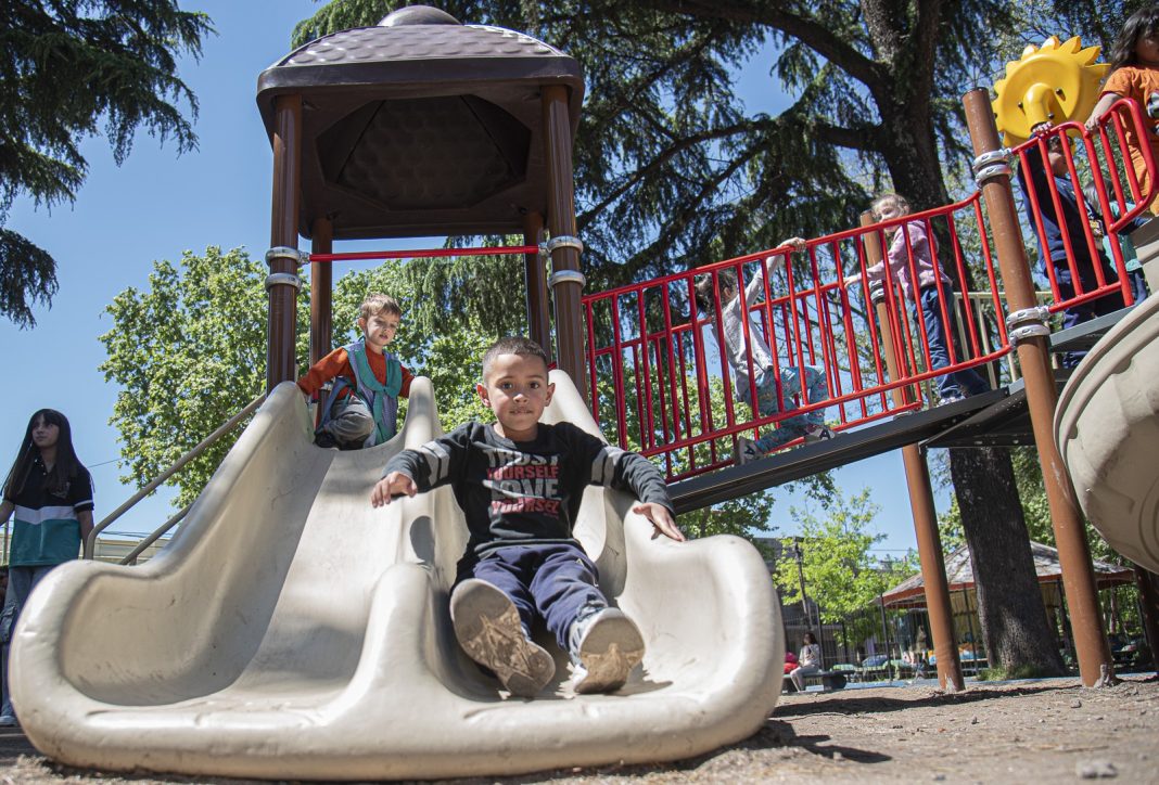 Por otro lado, en el patio de juegos infantiles se instalaron un mangrullo integrador, un mangrullo con toboganes, una calesita, dos pórticos de hamacas -con butacón integrador- y cuatro sube y baja simples.