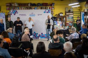 “Además de la presentación de este nuevo programa de escucha activa con las y los vecinos, hicimos este maravilloso anuncio que queríamos compartirlo con la comunidad de Don Bosco. Atendimos las demandas y también los aplausos, y daremos respuesta a todo lo que se pueda. Llevaremos esta iniciativa a cada barrio, que es la impronta de trabajo que tiene nuestra compañera Mayra Mendoza”, señaló Eva, acompañada por integrantes del Gabinete municipal, en una reunión que se llevó a cabo en la sociedad de fomento y Biblioteca Popular Don Bosco (Ciudadela 2158).