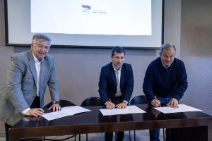 El encuentro tuvo lugar en la planta industrial ubicada en la calle Luis María Drago N° 1382, donde se rubricó un acuerdo que también busca la elaboración y ejecución de planes de carrera y diseños curriculares para la formación de perfiles técnicos especializados en construcción en seco. También participaron el rector de la UNAB, Pablo Domenichini; y Walter Barbieri, titular de la empresa homónima.